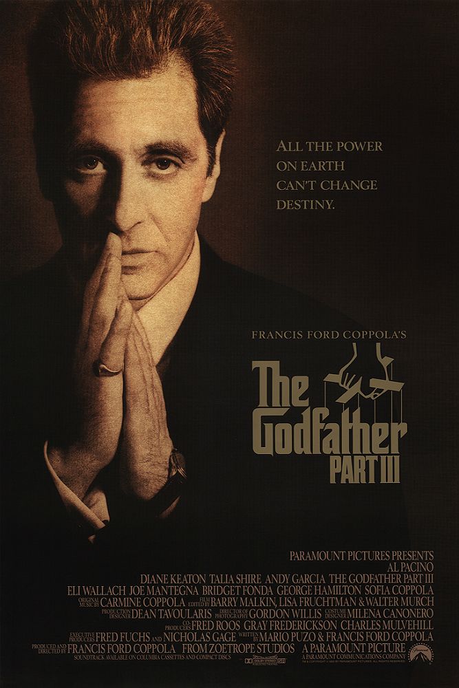 Esta Parte III presenta una conspiración global que involucraba al Vaticano al mismo tiempo que la consabida rivalidad entre familias de la mafia, y nos introdujo en una historia de amor y legado que nunca cautiva, principalmente por la ausencia absoluta de carisma y capacidad actoral de Sofia Coppola.