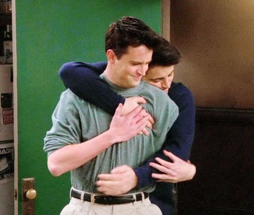 De hecho, en un capitulo les pide por favor que si puede besar a Ross o a Chandler para practicar para una audición que tenía que hacer, ambos se negaron pues no querían besar a otro hombre aunque fuera para ayudar a un amigo.