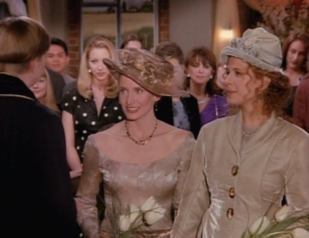 Por ejemplo, Friends fue la primera serie en la historia de la televisión que televisó una boda lésbica (entre Carol, la exmujer de Ross, y Susan). Cabe destacar que hacen muchas bromas y chistes al respecto de que la exmujer de Ross fuera lesbiana, aunque las bromas eran más dirigidas a ofender a Ross que a Carol.