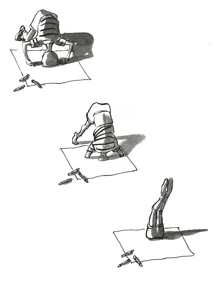 Para mí en este libro, el dibujo lo es todo, hay poco que leer porque literalmente aquí se transmite aquella frase un poco trillada de: “una imagen dice más que mil palabras”.